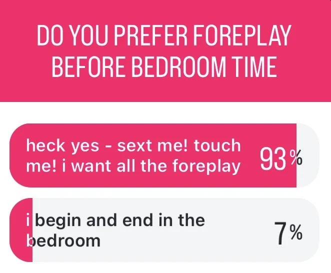 This week I asked my community about foreplay and more poignantly - do you prefer foreplay before bedroom time?